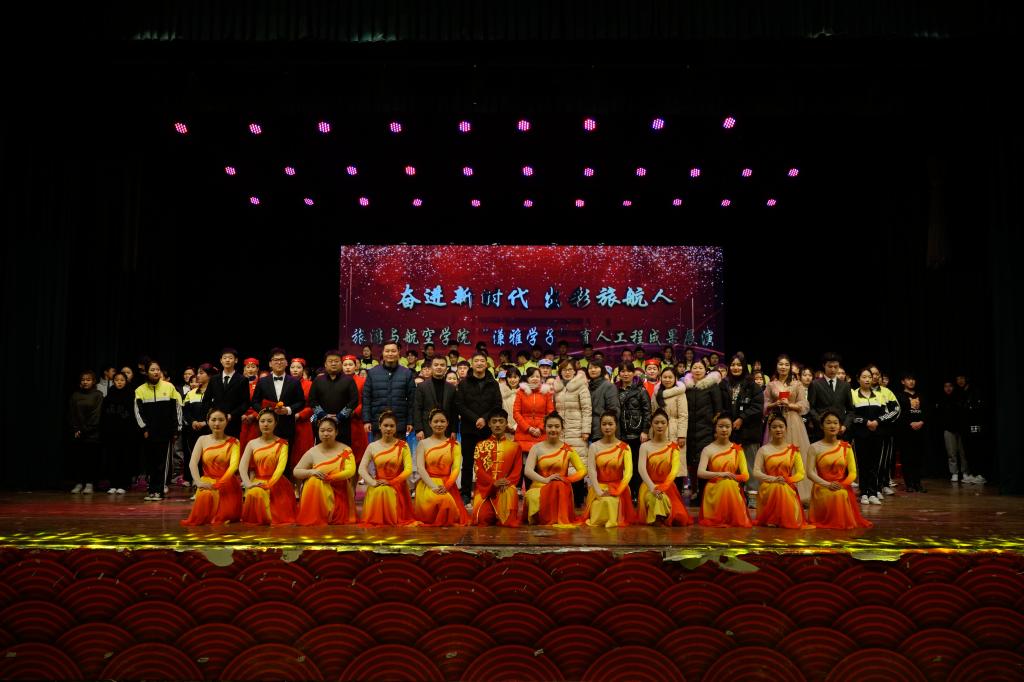 2020年12月31日下午,我校旅游与航空学院“谦雅学子”育人工程成果展演在学校大礼堂取得圆满成功。副校长朱晓红以及旅游与航空学院师生1000余人现场观看了演出。