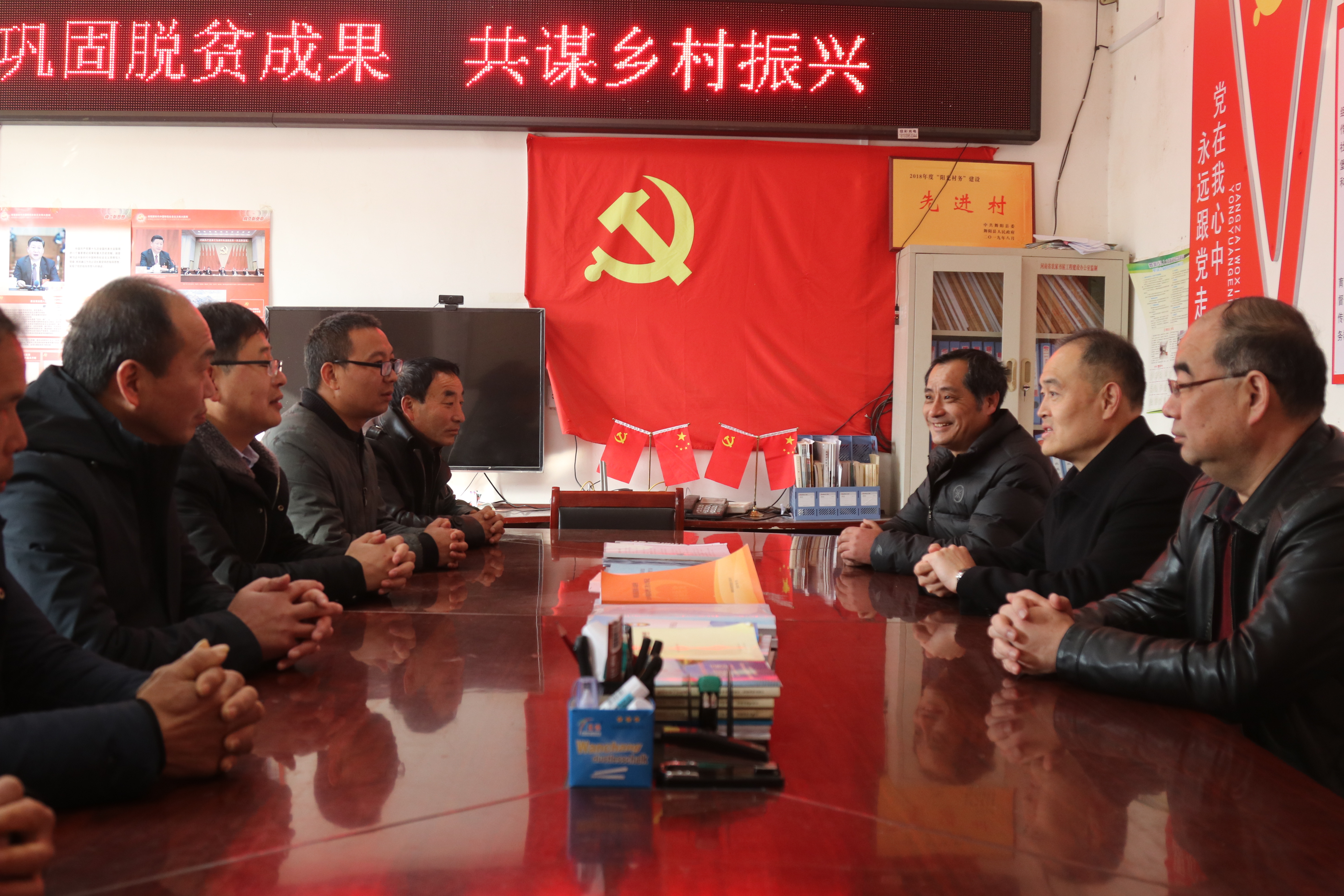 薛存心一行与莲花镇党委副书记、镇长王亚博,学校驻村第一书记朱献周,大赵村党支部书记赵连会等进行了座谈交流,听取了我校驻村第一书记朱献周开展结对帮扶工作以来的情况汇报以及下一步工作计划。王亚博对我校驻村帮扶工作给予了高度评价,并对学校派出精干力量驻村表示了感谢。薛存心勉励驻村同志要按照中央、省委、市委和学校党委的工作部署,在“十四五”规划开局之年,继续扎实开展工作,发挥学校人才和技术优势,巩固拓展脱贫攻坚成果,全力以赴为乡村振兴工作的开展做好准备。