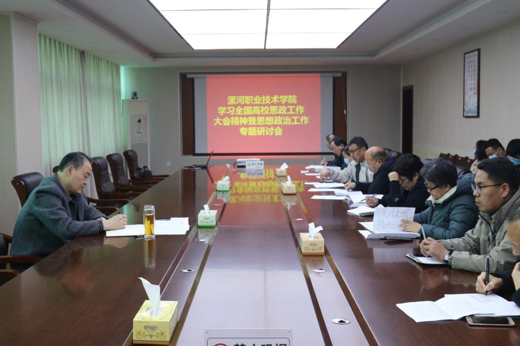 根据校党委工作部署,3月9日下午,我校在行政办公楼第二会议室组织召开学习全国高校思想政治工作会议精神暨思想政治工作专题研讨会,深入学习贯彻全国高校思想政治工作会议精神和习近平总书记关于高校思想政治工作的要求,确保会议精神在学校落地落实。校党委副书记薛存心出席会议并讲话。相关职能处室负责同志、各院系(部)书记、思政课教师代表和辅导员代表参加会议。