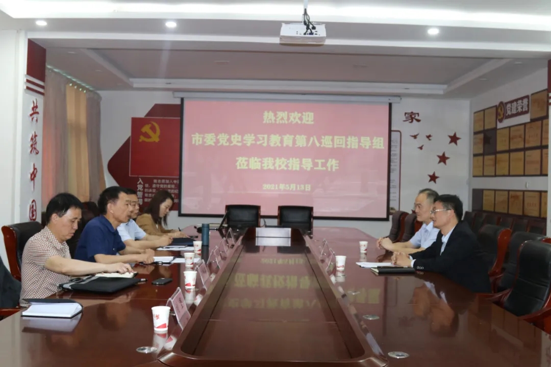 5月13日下午,市委党史学习教育第八巡回指导组副组长陈荣山一行5人到太阳成tyc7111cc指导党史学习教育工作。校党委副书记薛存心,校党委委员、组宣部部长缪俊岭出席汇报会。