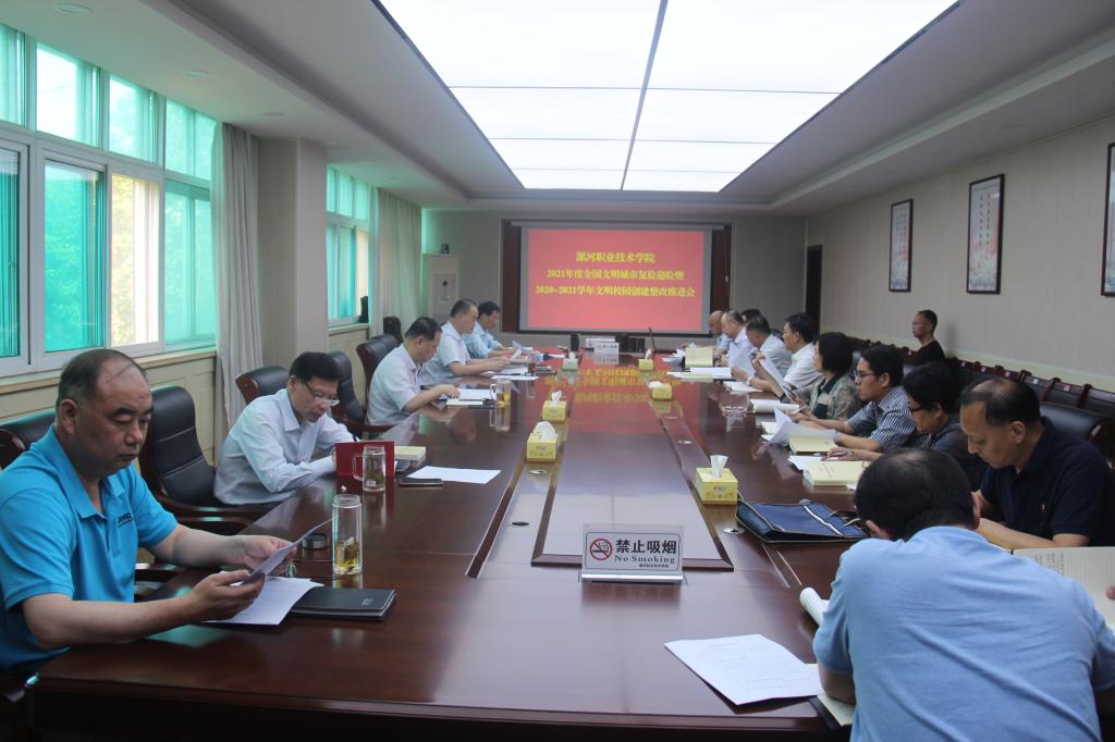 5月24日下午,漯河职院召开2021年度全国文明城市创建暨2020-2021学年省级文明校园创建整改推进会。党委副书记、校长王春阳出席会议并讲话,党委副书记薛存心主持,学校党委领导班子成员出席,各党总支、直属党支部书记参加。