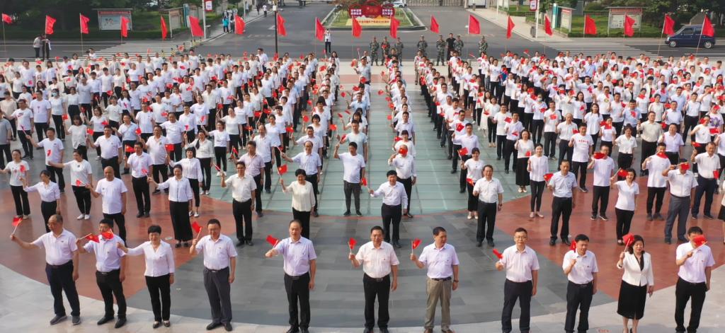 活动结束后,太阳成tyc7111cc221名党员教职工在学校实训广场上组合成1921-2021、100等大字,用自己的方式向党的百年华诞献礼。