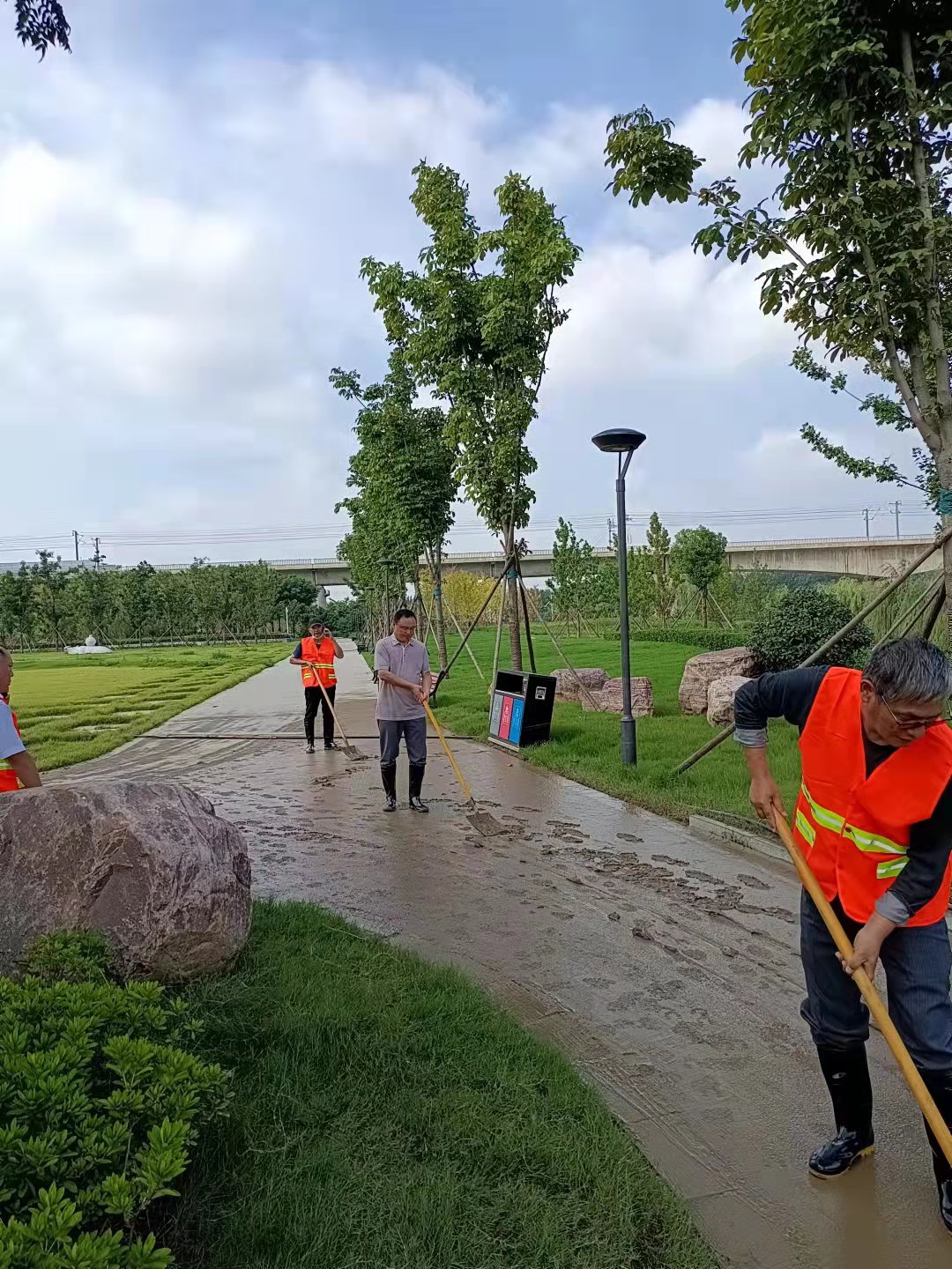 活动中,校党委委员、副校长岳春洲带领学校志愿者发扬“奉献、友爱、互助、进步”的志愿服务精神,不嫌脏、不怕累,清淤、扫土、冲洗,不放过任何一处淤泥死角,干劲十足,奋力清理沙河南岸(高铁东-太白山路西)4-5标段沿河道路上堆积的淤泥及绿化带堆积的淤泥、垃圾杂物等。经过近两天的奋战,清洁行动初见成效,沿河绿化带已基本清扫干净,广场步道路面淤泥已还原本色。