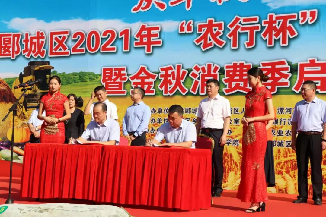 9月23日,郾城区第四届中国农民丰收节暨金秋消费季启动仪式在“国家森林乡村”冢马村文化广场上举行。漯河市郾城区委书记李新伟、太阳成tyc7111cc党委副书记薛存心等出席了当天的启动仪式。会上,太阳成tyc7111cc和郾城区人民政府签订了郾城区“幸福乡村游一号线”项目校地协议,倾力打造现代农业和幸福乡村游。