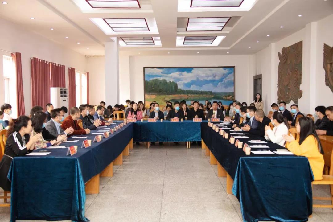 漯河职院科研处处长张津,河南曙光健士集团、河南金大地化工有限公司、河南叮当牛食品有限公司、河南三剑客农业股份有限公司等漯河市近20家重点企业代表,漯河职院艺术设计系教师团队代表等40余人参加。
