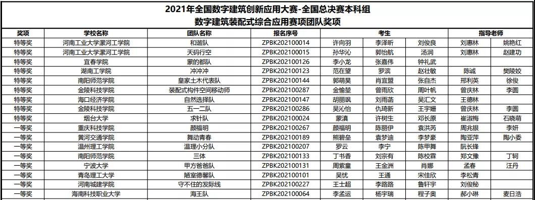 近日,全国数字建筑创新应用大赛成功举办,河南工业大学漯河工学院选派的建筑工程学院“和谐队”、“天码行空队”两支队伍包揽数字建筑装配式综合应用赛项本科组前两名,6名成员包揽全国装配式个人排名前6名。因成绩优异,两支队伍均被赛事组委会评定为团体特等奖。