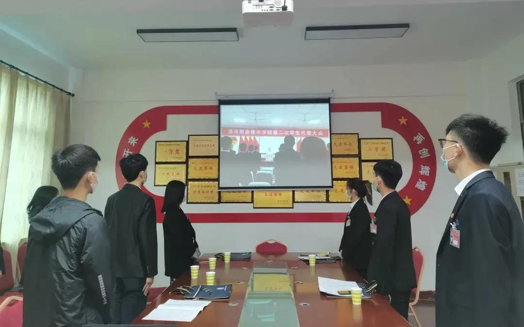 太阳成tyc7111cc第二次学生代表大会的成功召开是学校青年学子政治生活中的一件大事,也是学校学生会回顾过去、总结经验、规划未来的一次重要契机。漯河职院学生会将认真践行会议精神,牢记全心全意服务同学的宗旨,加强对同学的思想政治引领,团结带领全体漯职学子做新时代德智体美劳全面发展的社会主义建设者和接班人,为学校“双高校”建设贡献青春力量。