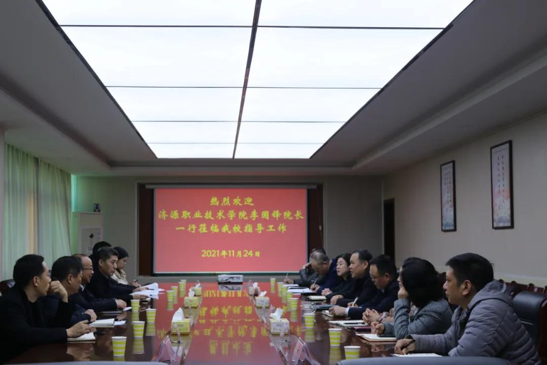 11月24日,济源职业技术学院院长李国锋一行莅临漯河职院进行考察交流。党委副书记、校长王春阳,党委委员、副校长岳春洲、程传蕊出席,校两办、人事处、教务处、总务处、招生就业处、饮食服务中心等部门负责同志参加交流活动。