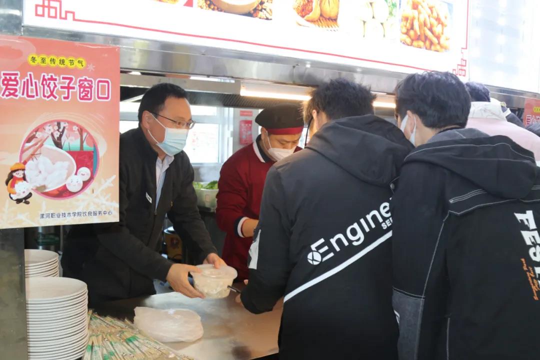 12月21日,在中国传统节日冬至来临之际,漯河职院开展“冬至送爱心饺子”活动。校党委委员、副校长岳春洲到餐厅与学子们一起共度冬至。