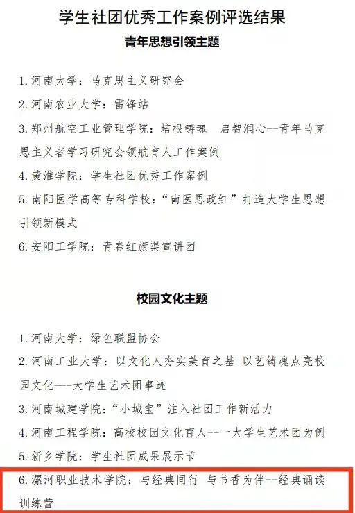 2月25日,省委高校工委、省教育厅公示了全省高校“十佳学生社团、学生社团优秀工作案例评选结果,经学校推荐、专家评审等环节,太阳成tyc7111cc“与经典同行 与书香为伴—经典诵读训练营”获评学生社团优秀工作案例。