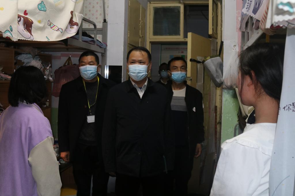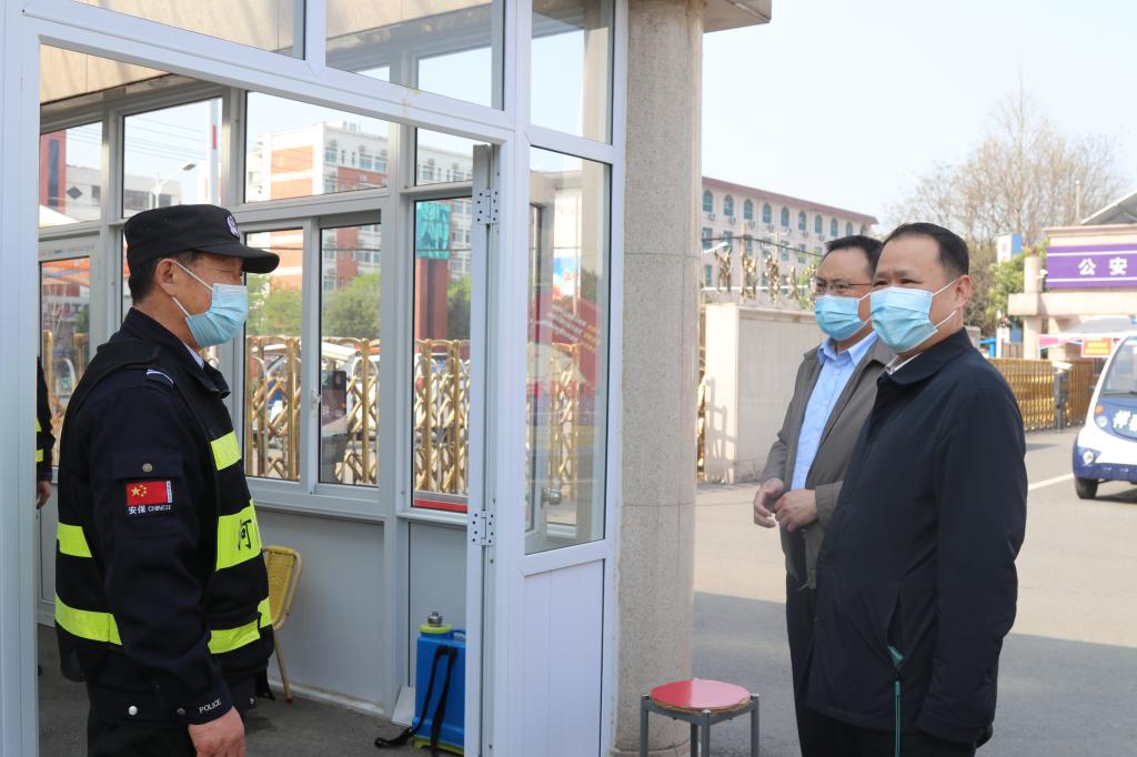 4月4日、4月5日,太阳成tyc7111cc校长王春阳先后来到机电工程系、信息工程学院、许慎文化学院、疫情防控应急专班、学生宿舍、餐厅、学校门口等,看望慰问一线师生员工,实地检查指导疫情防控工作。校党委委员、副校长朱晓红、岳春洲,党委委员、工会主席吕爱华陪同。