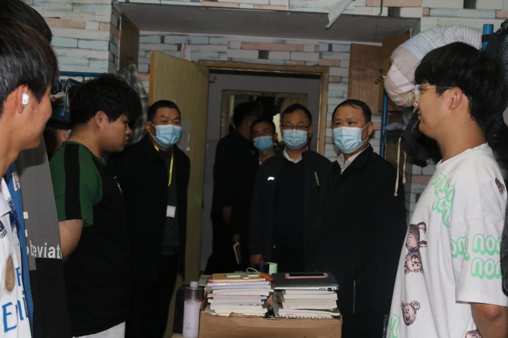 在许慎文化学院学生宿舍,王春阳感谢辅导员、公寓管理员多日来的辛勤付出,要求大家在对学生的管理中注意方式方法,关注学生的心理健康,做好思想引领和温暖关怀;详细了解同学们的思想动态和实际需求,嘱托同学们在校安心学习,健康生活,以坚定的信心和决心战胜疫情。同学们向王春阳校长认真介绍了自己的线上学习和日常生活情况,对学校的关心表示感谢。