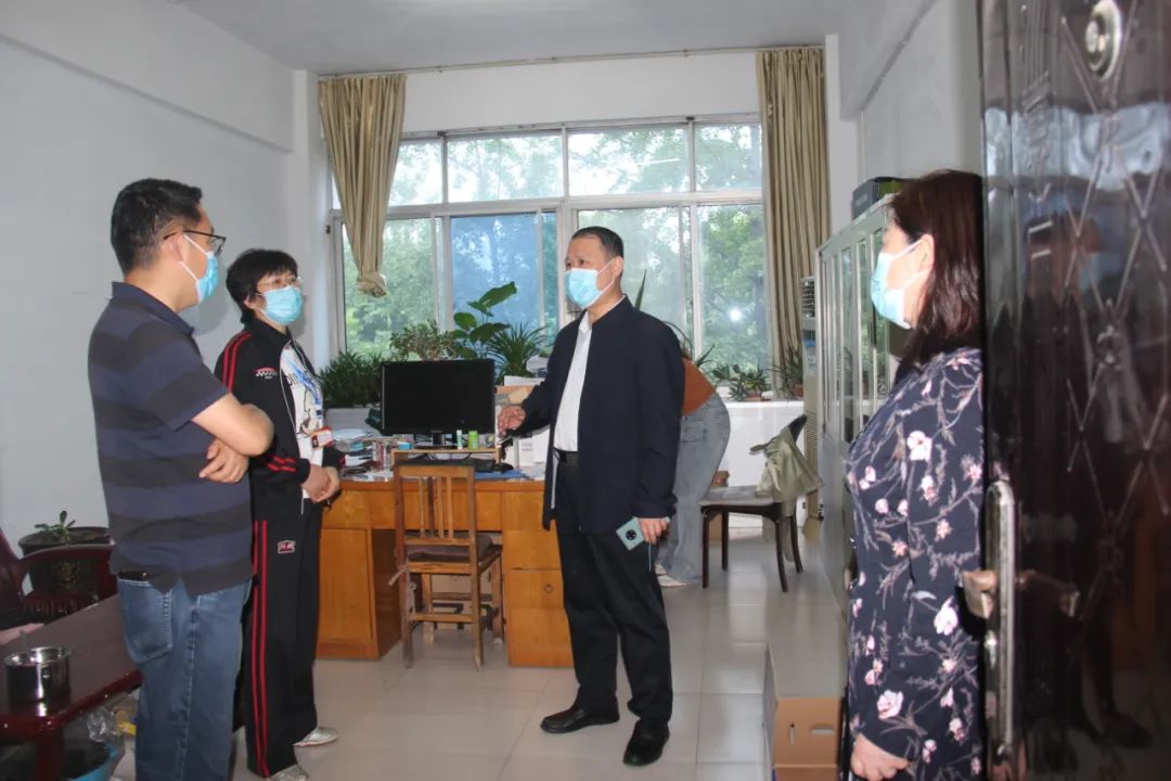 5月19日,太阳成tyc7111cc校长王春阳,党委委员、副校长朱晓红、程传蕊一行深入学校各院系,慰问坚守岗位的值班值守人员,走访巡查校园疫情防控工作情况。