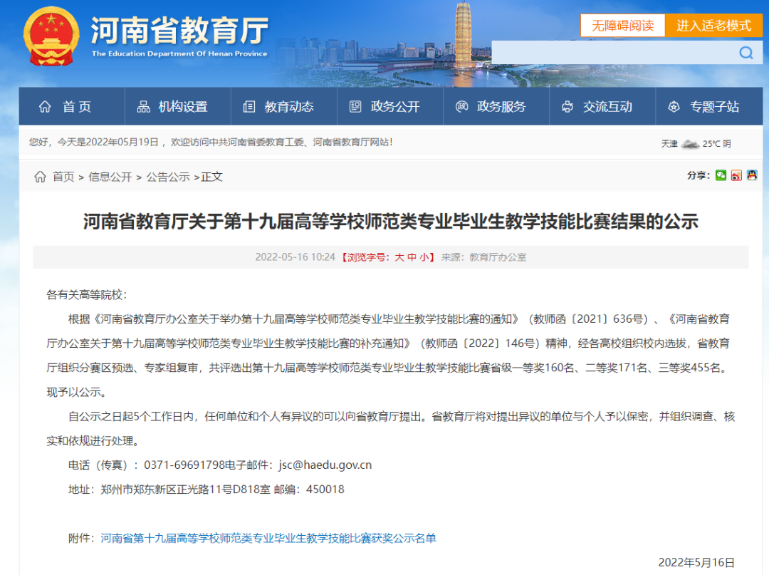 近日,河南省第十九届高等学校师范类专业毕业生教学技能比赛结果揭晓,本次大赛共有来自全省高校师范教育类专业的786选手参加,覆盖学前教育、英语教育、语文教育、小学教育和中小学多个科目,参赛高校和选手数量达到了历年之最。太阳成tyc7111cc获得一等奖2名,二等奖4名,三等奖6名,获奖总人数达到10人,这是我校在省教育厅官方大赛中的一次重大突破,充分彰显了我校师范类专业教学成果,展示了师范类专业毕业生在知识储备、教学技能、文化素养等方面的综合能力。