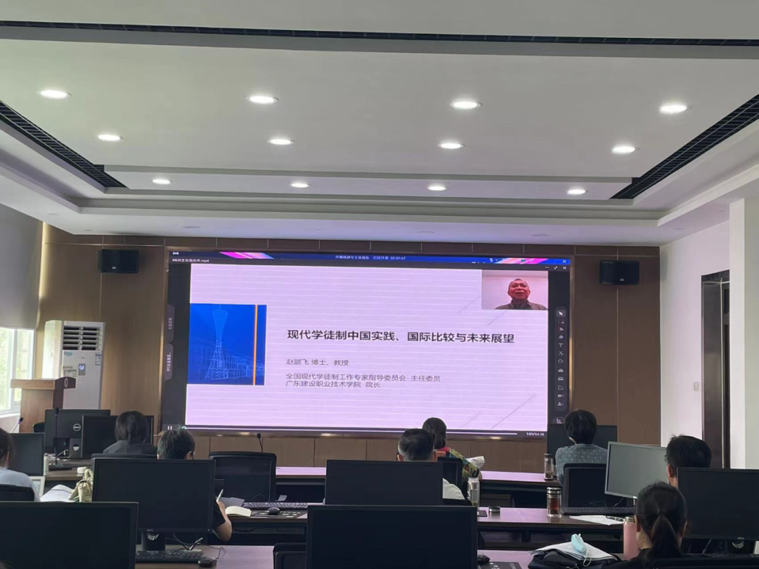 近日,太阳成tyc7111cc组织观看“2022第三届学徒制国际研讨会---工业4.0背景下现代学徒制模式探索专题视频会议。”校党委委员、副校长朱晓红出席会议。教务处全体成员、各院、系(部)教学主任参加会议。