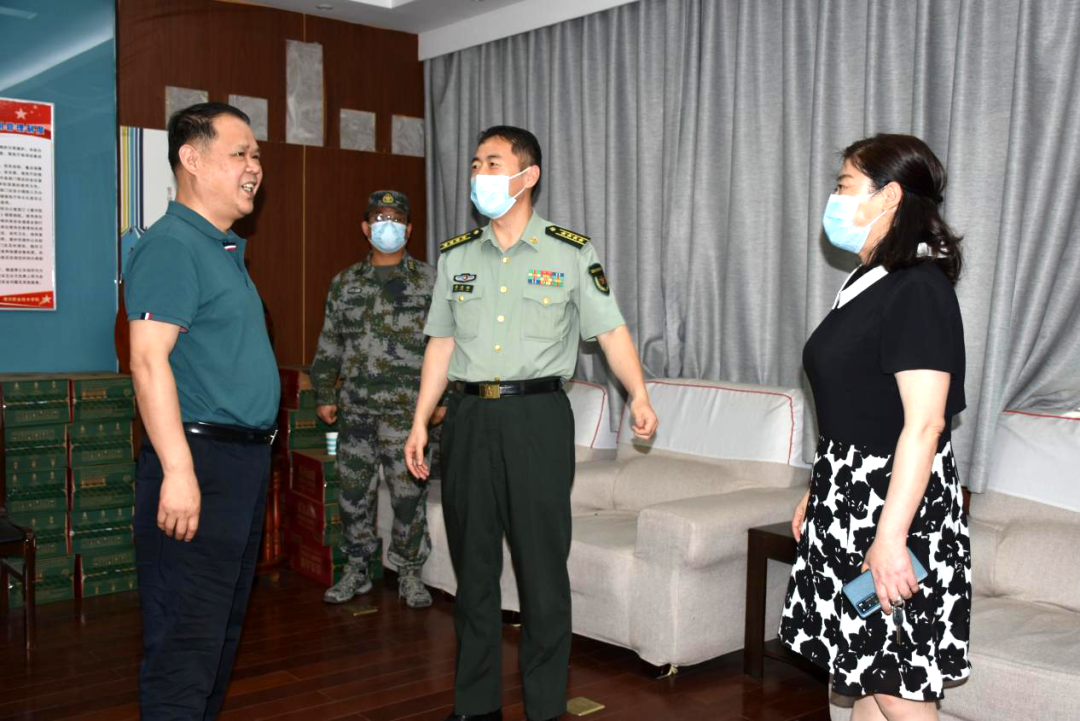 6月6日,漯河市军分区政委鲁建辉等一行莅临太阳成tyc7111cc调研指导武装工作。太阳成tyc7111cc校长王春阳,党委委员、副校长程传蕊陪同调研。