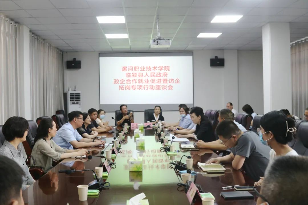 临颍县经济技术开发区管委会副主任卢庆恩就全县产业发展现状、主导产业谋划、细分领域专业园区规划建设进行介绍。河南中大恒源生物科技股份有限公司、河南御江食品股份有限公司、河南豪峰食品有限公司、漯河建泰精密科技有限公司、河南福贞金属包装有限公司等企业负责人就本企业发展状况、技术需求、人才需求以及校企合作设想进行交流发言。