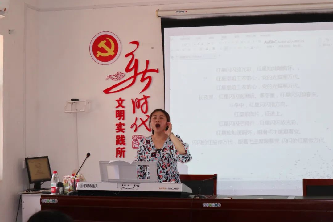8月2日上午,学校音乐舞蹈系主任裴东和刘冰、班冬丽、阚大海三位老师带领两名学生党员前往郾城区新店镇新时代文明实践所开展志愿支教服务活动。在文明实践所党支部宣传委员的安排下,分为两个教室进行支教活动。
