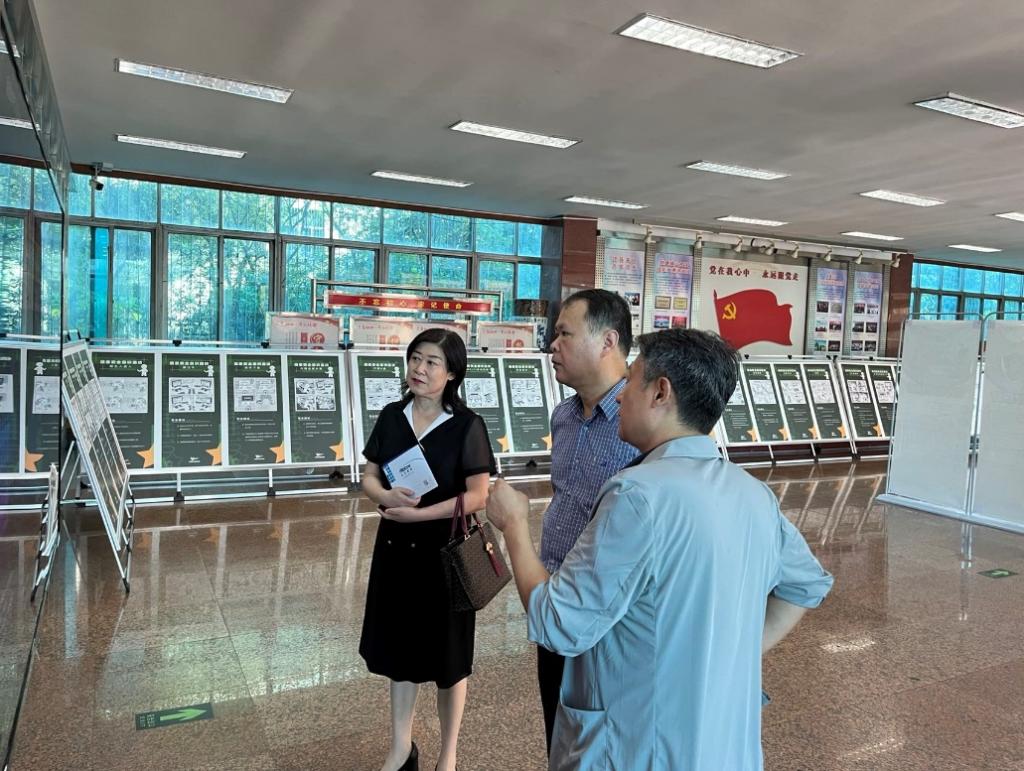 党委副书记薛存心,纪委书记李兆强,党委委员、组宣部部长缪俊岭参观网络安全宣传展览