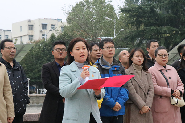 10月14日早7点,建筑工程学院在行政办公楼前举行升国旗仪式。院长赵冬梅、副院长姚艳红、党总支副书记李文静、团总支书记王志皓及全院师生和国旗护卫队共1000余人参加。