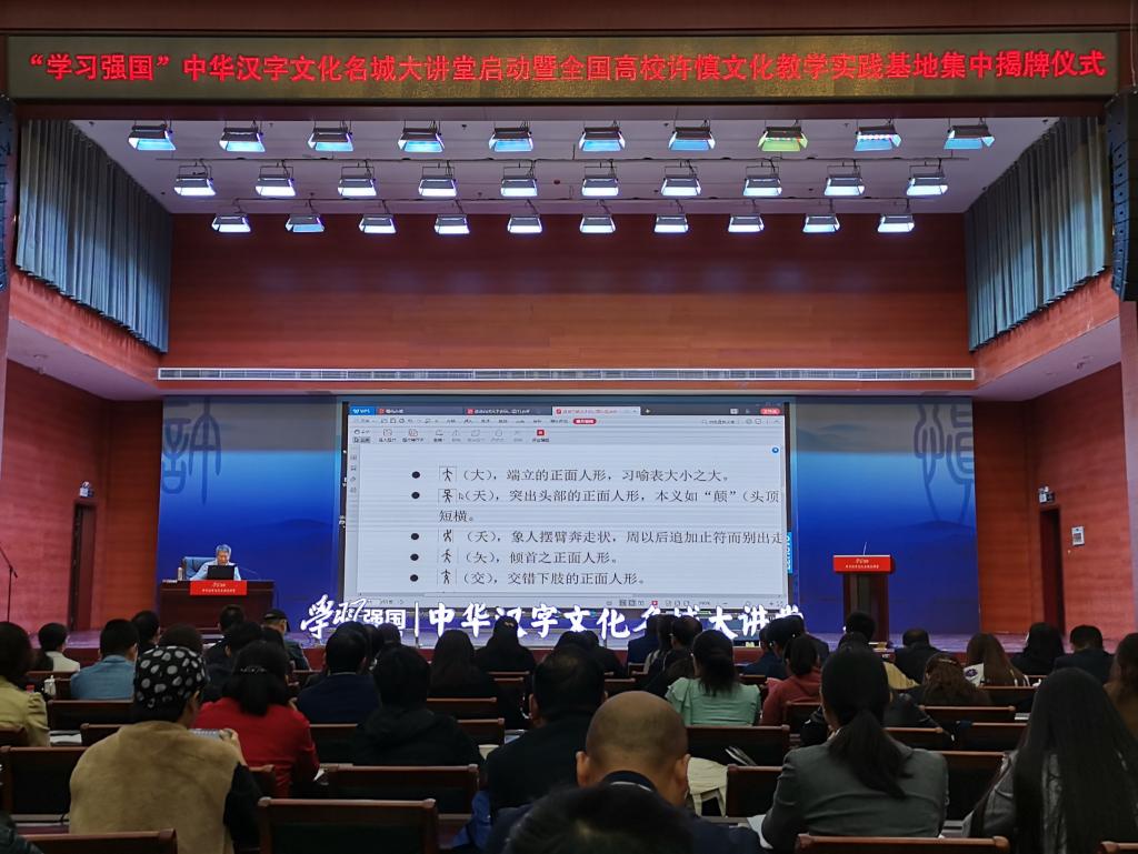 18日至20日期间,我校副校长朱晓红等领导及许慎文化学院师生认真聆听了河南文字学会会长王蕴智教授的《谈谈早期文字的结体及其书写特征》、北京语言大学张猛教授的《本义的天空——说说汉字》、北京师范大学李运富教授的《<说文解字>的名义与功用》、陕西师范大学党怀兴教授的《传承汉字文明,坚定文化自信》、复旦大学刘钊教授的《出土文献研究漫谈》等来自全国各地专家们的讲座。全国各地专家学者的系列精彩讲座为与会代表和我校师生提供了一场许慎文化与汉字文化的盛宴,使师生们眼界大开,受益匪浅。