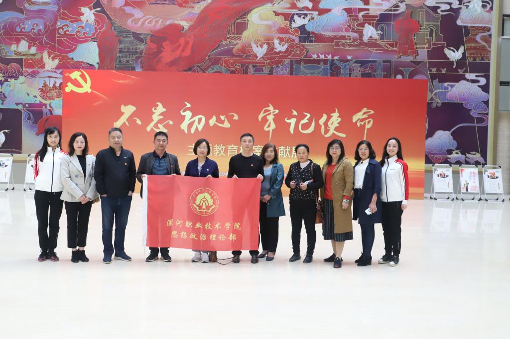 为弘扬革命传统,传承红色基因,进一步推进思政教师队伍建设,坚定理想信念,强化责任担当,扎实推进高校思政部“不忘初心,牢记使命”主题教育,10月18日下午,思政部主任石俊霞带领思政部全体教师前往漯河市博物馆,参观学习“不忘初心 牢记使命”大型文献展。