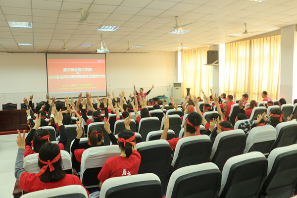 王猛希望与同学们一起努力把安踏产品营销做出来,并带领大家宣誓,表达必胜的信心。