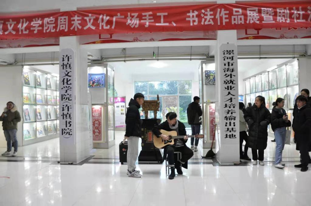 11月30日,许慎文化学院团总支在三号教学楼大厅举办手工、书法作品展暨沙澧剧社演出等专业社团展演活动。