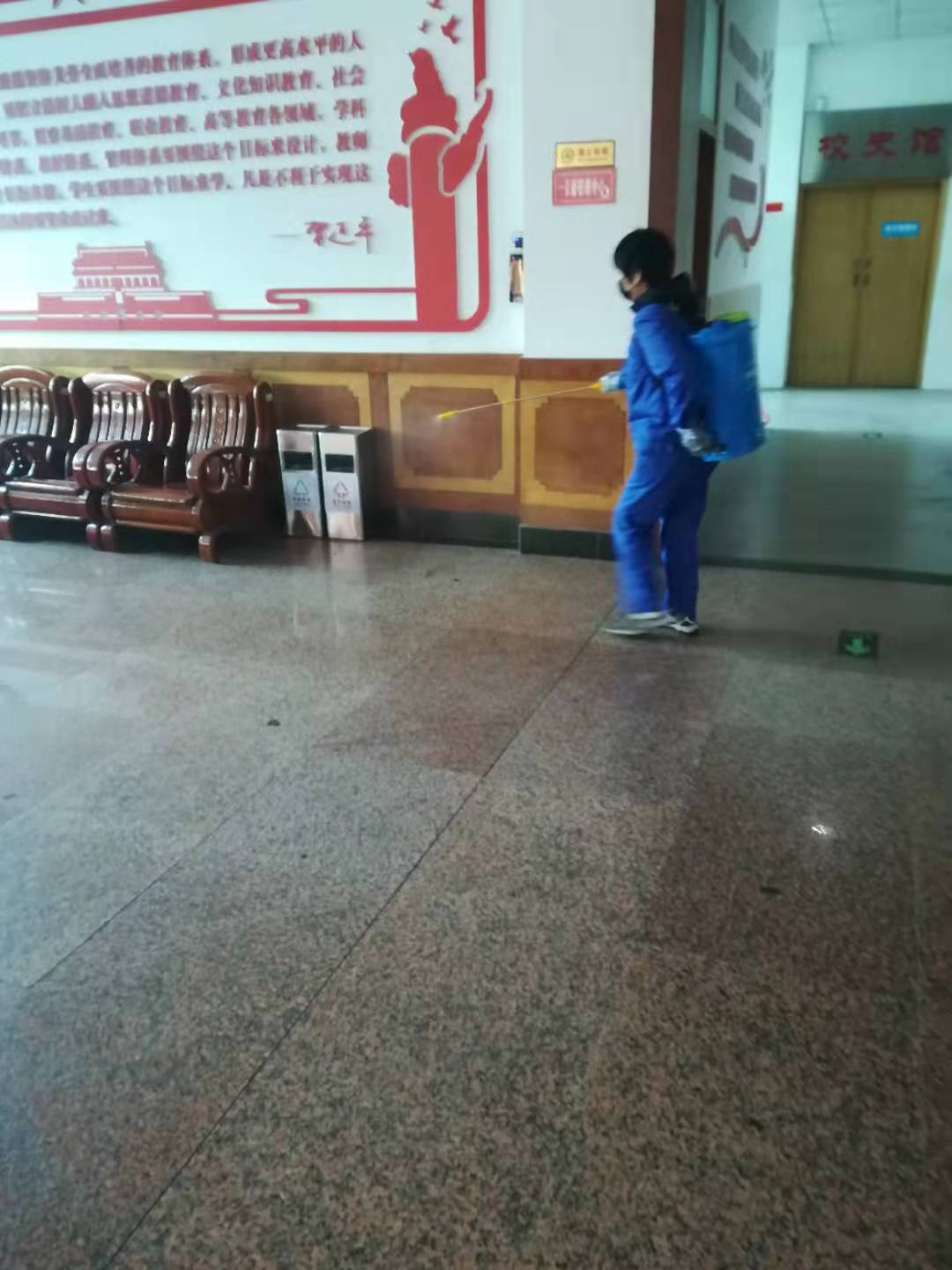 二是做好校区和家属区消毒工作。为遏制新型冠状病毒的发生和传播,总务处全体人员坚守岗位、履行职责,对家属区和校区易感染区域进行喷洒消毒,真正把消毒工作落实到每一个角落,防止疫情传播,打响防疫消毒战!