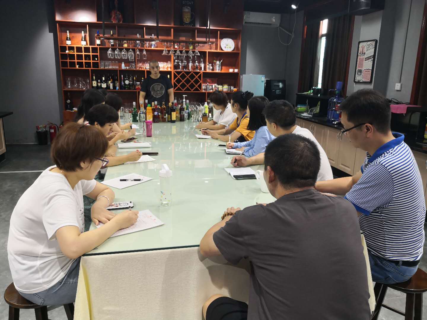 培训中,金占峰老师通过引入丰富生动的实操案例,极大调动了老师们的讨论积极性,并引发了参训教师对如何进一步提高教育教学能力的思考。此次培训集理论教学、现场实践和亲身体验于一体,各位参训教师认真听讲,亲自动手参与到鸡尾酒和咖啡的制作过程,并品尝了自己的劳动成果。