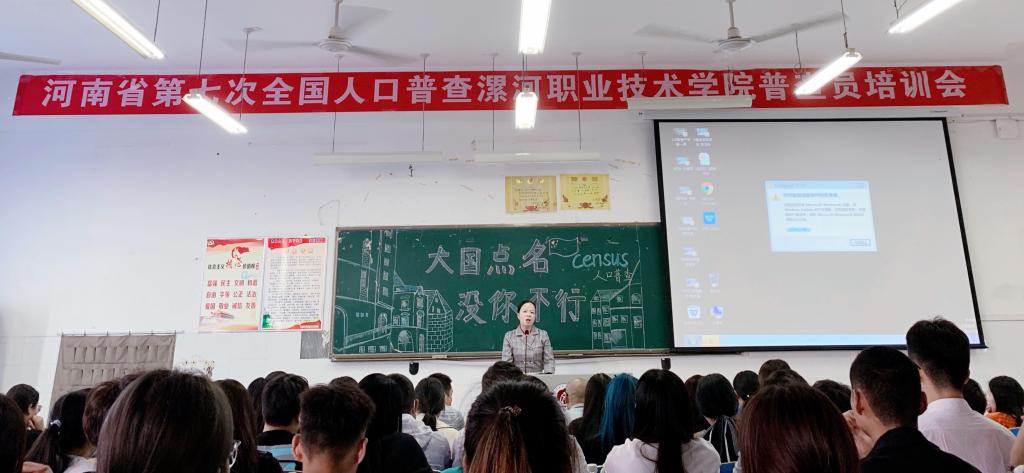 根据漯河市政府印发的《关于认真做好第七次全国人口普查工作的通知》要求,结合学校工作实际,我校旅游与航空学院2019级学生被确认为河南省第七次全国人口普查源汇新区的普查员。为了高质量完成人口普查任务,9月27日,旅游与航空学院在3405教室举行了太阳成tyc7111cc普查员培训会,源汇区人口普查办公室主任张琳以及成员陈珂、蔡志远、周洋等受邀到校对学生进行集中培训,包括普查摸底工作及长短表的指标介绍、人口普查相关数据的处理等。学校旅游与航空学院领导班子成员、2019级全体学生参加了此次培训会。