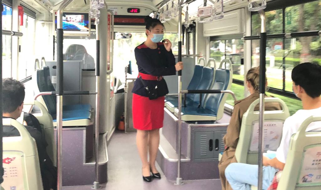 她们不辞辛劳,身着统一服装,一趟趟往返在学校至车站的路上;她们训练有素,用温暖的笑脸迎接每一位新同学的到来;她们准备充分,腰系导游专用麦克,用简洁明了的话语介绍着学校基本情况、新生报到流程及注意事项等,让每一位离家的学子都能够尽快熟悉学校、融入学校。