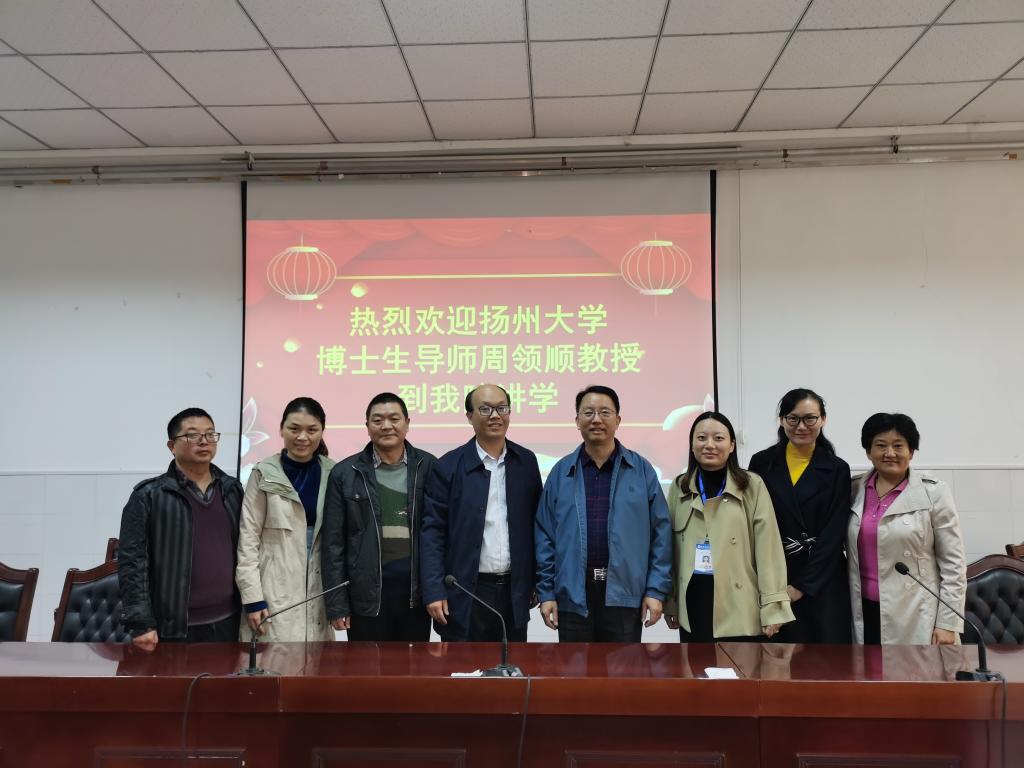 周领顺教授以《发现问题、分析问题、解决问题——以“绸子(带、缎)为个案”》为题,从语言学原理尤其是语言逻辑出发,讨论文学创作中修辞的逻辑性问题,强调理论之于文学创作、鉴赏、科研的重要意义。他鼓励教师们要做好科研,多学习语言学知识,注重语言规范,不断提高自身的写作水平和科研能力,学会鉴赏别人的同时又能规范自己。讲座结束后,周教授与陈利亚、梁静、姚佳琪三位弟子进行了深入的互动和交流。