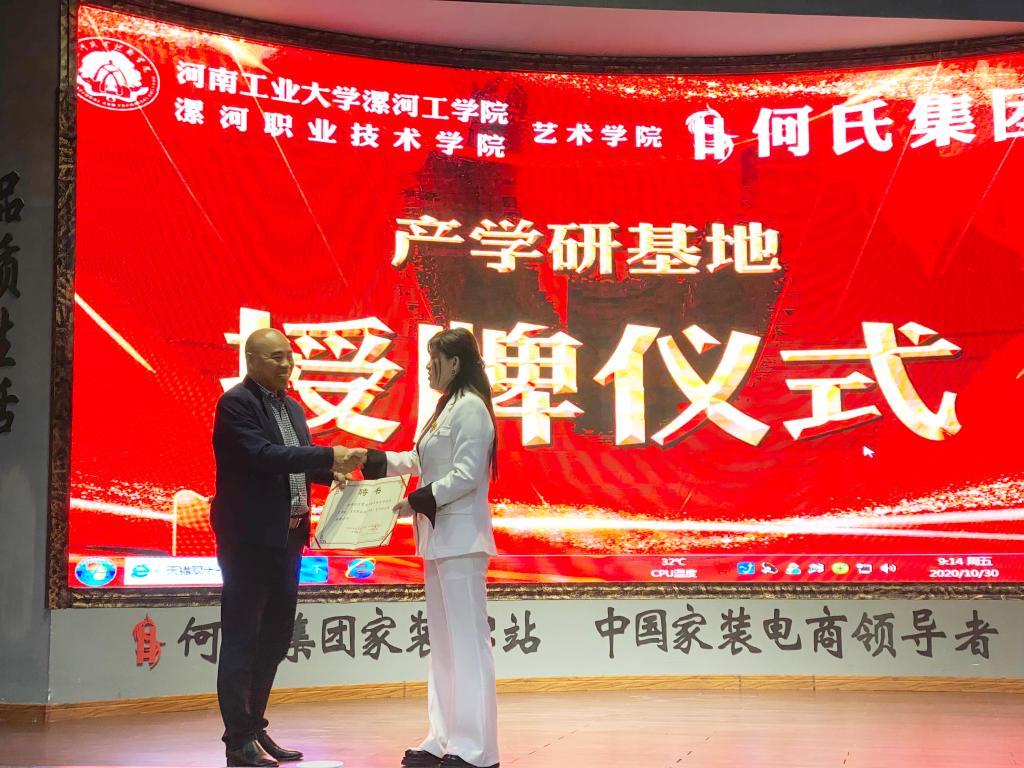 近日,艺术学院院长王群星、副书记李晓伟带领相关专业负责人分赴天誉国际装饰有限公司、北京龙发装饰漯河分公司、何氏装饰集团有限公司、和正装饰有限公司进行产学研基地授牌,为企业品牌设计师颁发特聘讲师证书,并在企业负责人陪同下参观了各企业工作场景,慰问了在企业正在实习实训的学生。