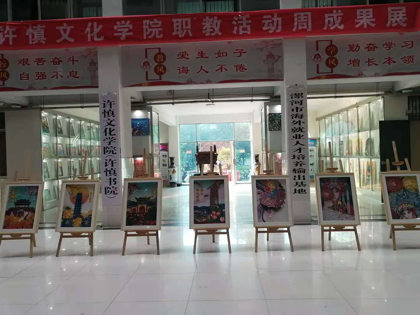 11月13日,由我校许慎文化学院“金手指”美工社承办的2020年度职业教育活动周拉开了帷幕,紧扣“人人出彩,技能强国”的活动主题,集中展出了许慎文化学院教育类专业学生作品,分为衍物、简笔画、粘土画、刻纸等6大类别,充分展示了许慎文化学院的教学成果,同时让人感受到了学生的心灵手巧和手工作品的无穷魅力。