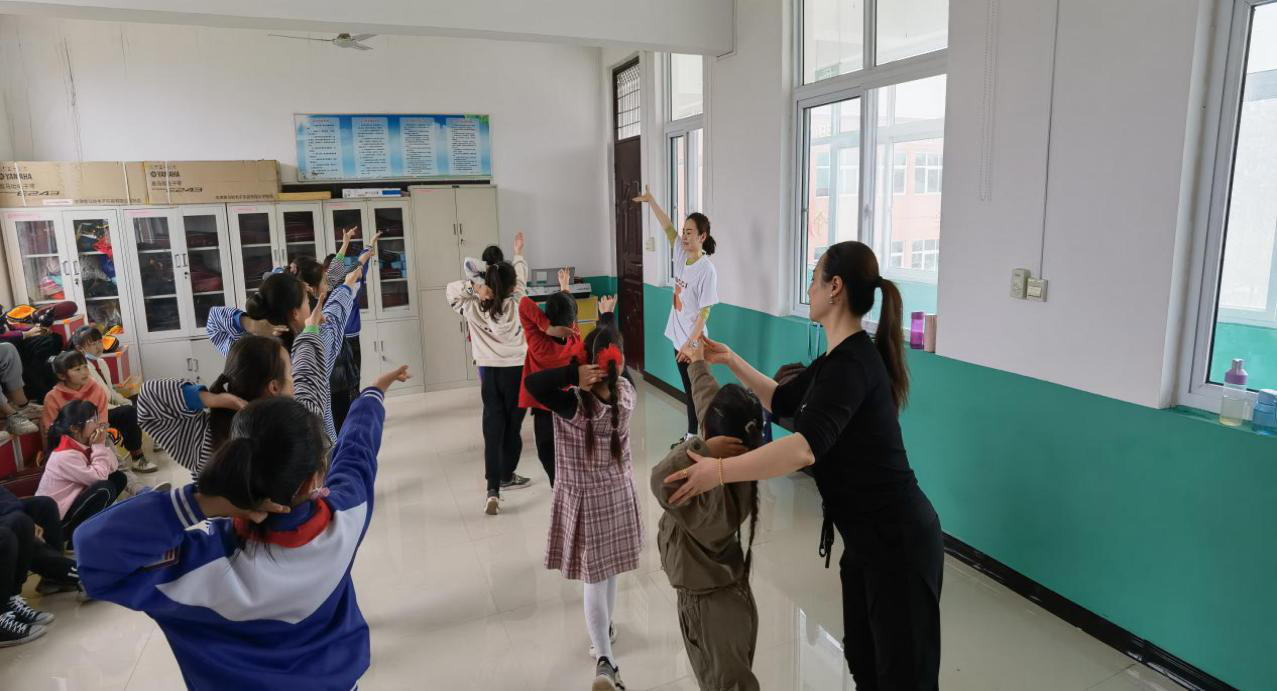 到郾城区李集镇牛王庙小学支教。郾城区李集镇牛王庙小学创建的有葫芦丝社团、街舞社团、书法社团、绘画社团、足球社团、手工社团、啦啦操社团、经典诵读社团、民族舞社团、合唱社团等十几个少年宫社团。漯河职院音乐舞蹈系舞蹈教研室主任李凌和黄贝贝两位老师对学校社团排练的节目,特别是舞蹈节目进行了专业的指导,给所支教学校的师生们带去他们需要的东西,对他们能有所启发、有所帮助,受到了该校师生的一致好评。