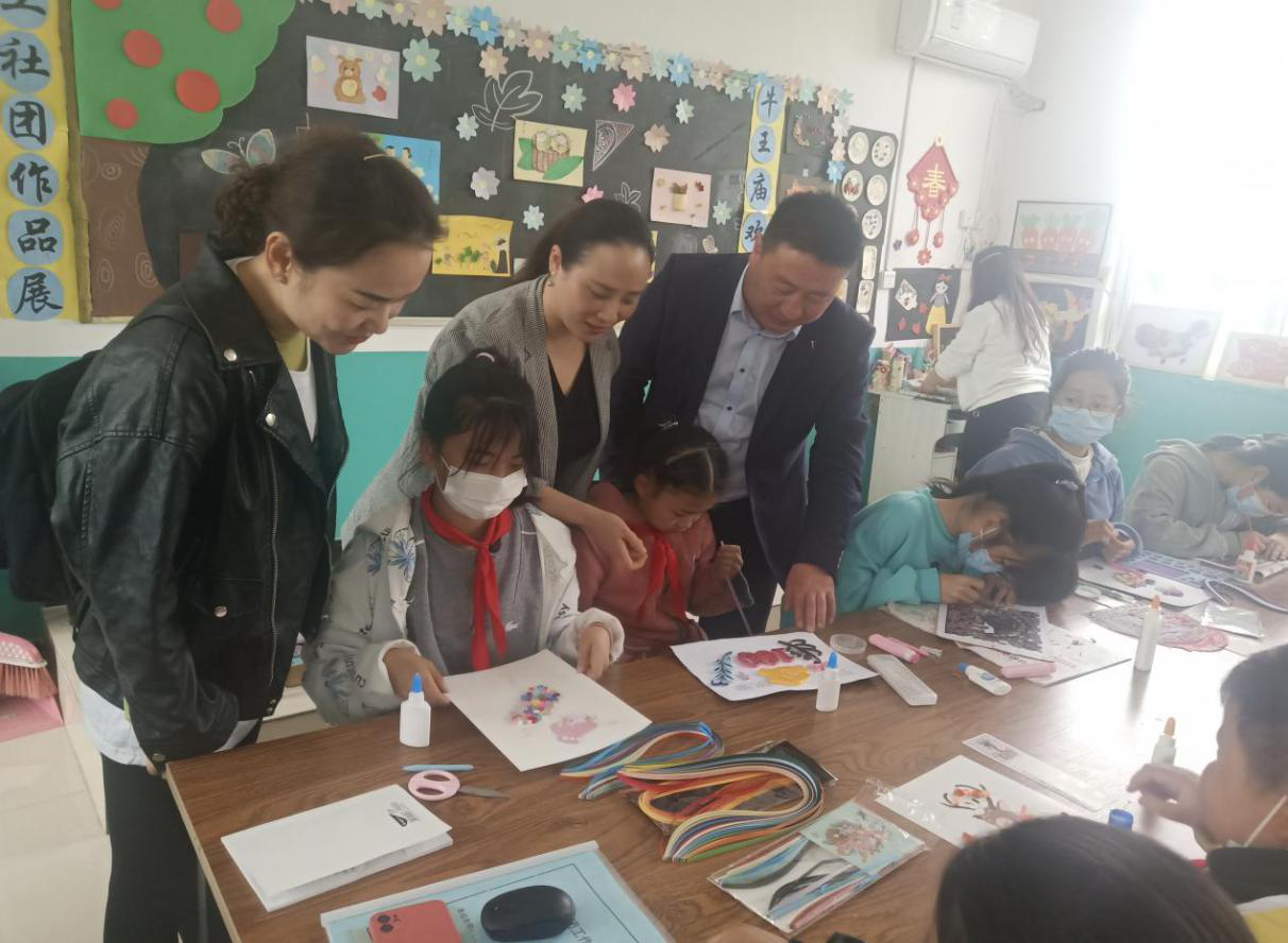 李凌和黄贝贝老师参观学校的社团兴趣班