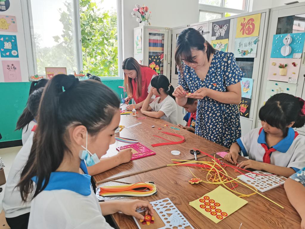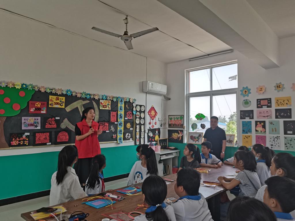 6月2日,许慎文化学院党史教育宣讲志愿服务队在院团总支书记袁海伟的带领下到郾城区李集镇牛王庙小学少年宫开展“宣讲百年党史,手工制作党徽”乡村少年宫支教活动,给少年宫的学生们上了一堂党徽制作示范教学课,用支教帮教的实际行动巩固党史学习成果。