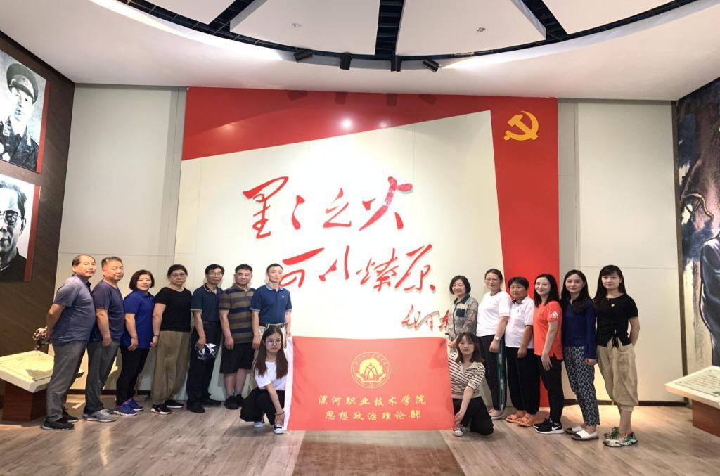 为迎接中国共产党建党100周年,深入开展党史学习教育,6月26日,思想政治理论部党支部全体党员教师前往确山竹沟革命纪念馆、遂平县嵖岈山人民卫星公社旧址参观学习,开展“追寻红色足迹,传承红色基因”党史学习教育主题活动。