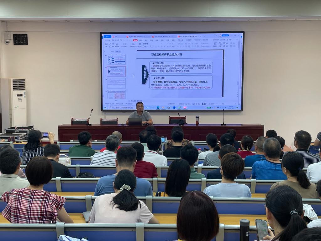 7月21日下午,漯河职院2021年暑期教师教学竞赛培训会成功召开,学校青年教师课堂教学创新大赛评委、武汉软件工程职业学院信息学院院长库波教授主讲,漯河职院教务处处长赵冬梅主持,各院系教学主任、教研室主任,教学能力大赛和青年教师课堂创新大赛参赛教师等100余人参加。