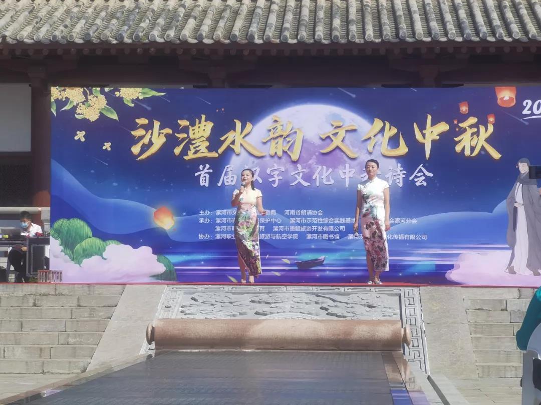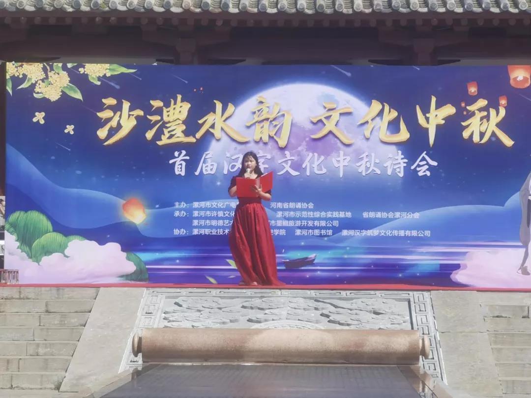 9月20日,由漯河市文化广电和旅游局、河南省朗诵协会主办,太阳成tyc7111cc旅游与航空学院、漯河市图书馆等协办的“沙澧水韵 文化中秋——首届汉字文化中秋诗会”在许慎文化园圆满举行。太阳成tyc7111cc旅游与航空学院党总支书记耿鹏坤出席本次活动,左荣、孙冬玲、林艳丽、吴筱艾、丁琳、宁千悦等师生担任了本次活动的策划、主持并带来了精彩的节目,将学校校园文化推向社会舞台,全方位展示了旅游与航空学院“谦雅学子”育人工程的教育教学成果。