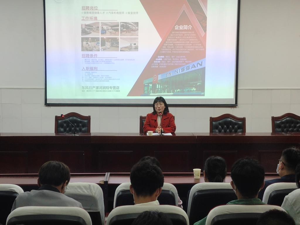 10月27日,机电工程系举行汽车专业2021级新生专业讲座,特邀漯河润翔日产专营店总经理任立道主讲,汽车专业教师和152名新生参加。讲座由机电工程系主任冯凯主持。